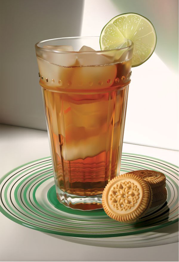 AI格式,含JPG预览图,关键字:生活矢量素材,夏天,饮品,柠檬茶,玻璃杯,冰块,清凉,饼干,矢量素材