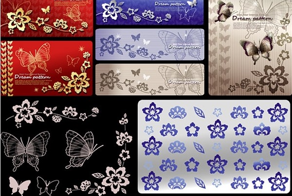 AI格式,含JPG预览图,关键字:矢量花纹,纹样,图案,花卉,精致,蝴蝶,装饰图案,背景,矢量图
