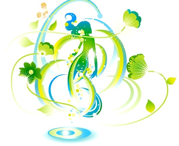 EPS格式,含JPG预览图,关键字:矢量花纹,植物,植物花纹,叶子,人物,女性剪影,绿色,矢量图