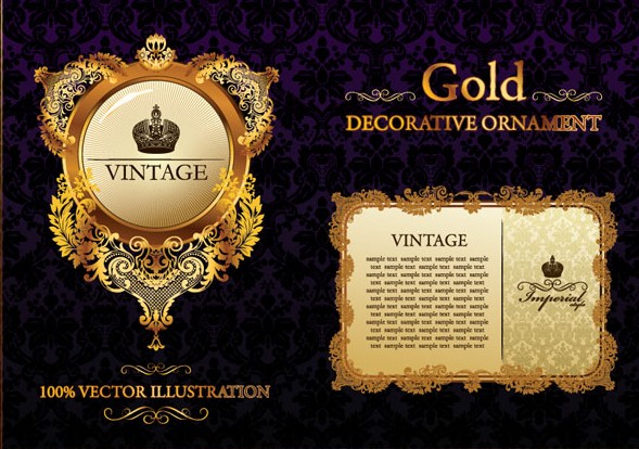 EPS格式,含JPG预览图,关键字:矢量花边,边框,装饰边框,金色,华丽,欧式风格,贵族,皇冠,矢量图