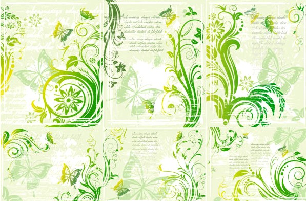 EPS格式,含JPG预览图,关键字:矢量花纹,植物花纹,绿色,清新,蝴蝶,藤蔓植物,怀旧风格,磨痕,暗纹,矢量图