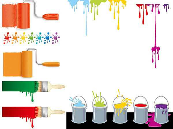 EPS格式,含JPG预览图,关键字:生活矢量素材,油漆,涂料,油漆刷,油漆桶,五颜六色,装修,油漆点,飞溅,流淌,矢量素材。