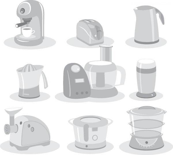 EPS格式,含JPG预览图,关键字:生活用品,矢量,小家电,咖啡机,面包机,电水壶,豆浆机,家用电器,矢量素材。