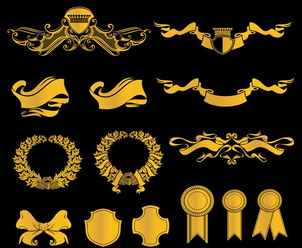 EPS格式,含JPG预览图,关键字:矢量花纹,花边,装饰边框,banner,欧式风格,丝带,皇冠,麦穗,胸章,,矢量图