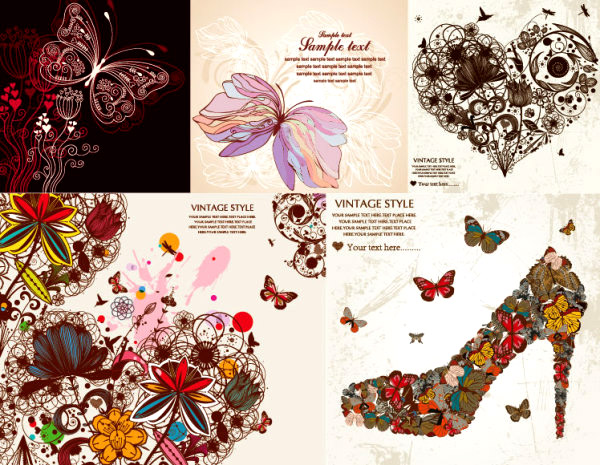 EPS格式,含JPG预览图,关键字:矢量花纹,花卉,手绘花卉,蝴蝶,图案,凌乱,潮流,心形,高跟鞋,五颜,矢量图