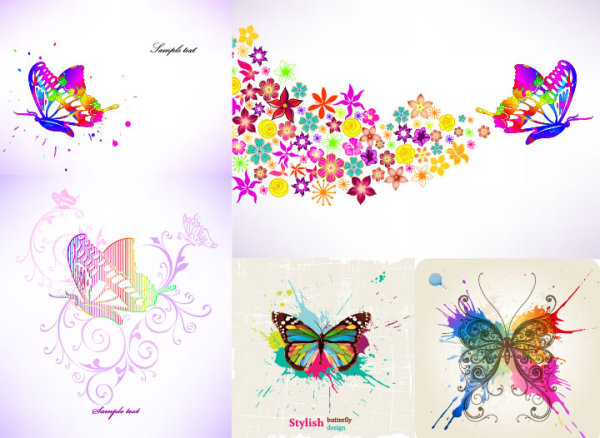 EPS格式,含JPG预览图,关键字:矢量花纹,昆虫,蝴蝶,潮流,五彩斑斓,飞舞,幻彩,梦幻,花朵,墨迹,矢量图