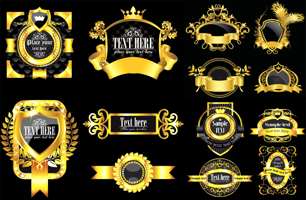 EPS格式,含JPG预览图,关键字:矢量花纹,边框,花边,金色,华丽,装饰边框,欧式风格,banner,盾牌,,矢量图