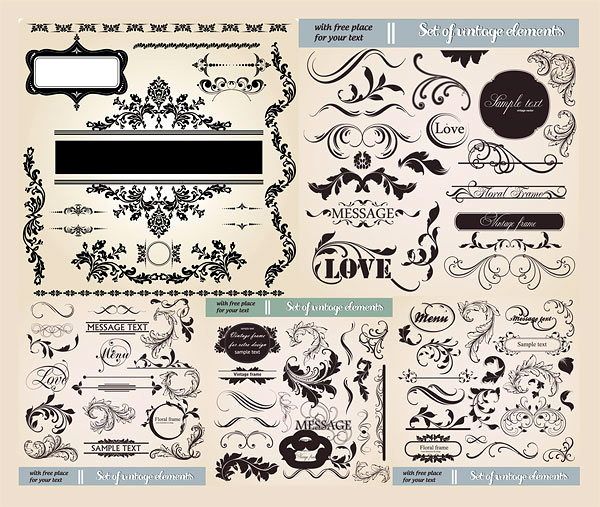 EPS格式,含JPG预览图,关键字:矢量花纹,欧式花纹,古典,实用,花边,边框,边角,装饰元素,精美,LOV,矢量图