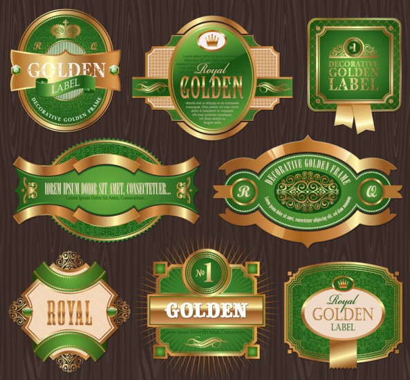 EPS格式,含JPG预览图,关键字:矢量标签,瓶贴,花纹,经典,金边,华丽,欧式,花边,边框,装饰纹样,矢量图