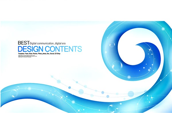 AI格式,含JPG预览图,关键字:矢量背景,花纹,蓝色,曲线,波浪线,卷曲,气泡,梦幻,动感,闪光,光斑,矢量图