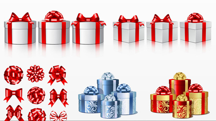EPS格式,含JPG预览图,关键字:蝴蝶结,礼物,礼品盒,丝带,节日,包装,矢量图
