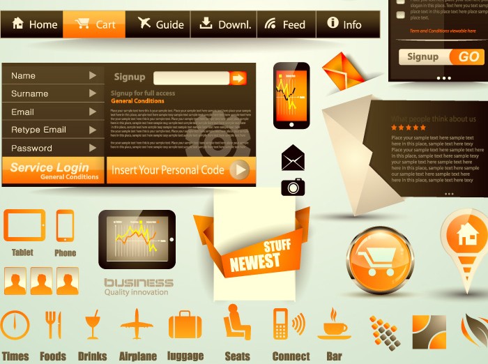 EPS格式,含JPG预览图,关键字:数据图,地图,UI设计,登录界面,用户界面,按钮,导航,网页,时尚,矢量图