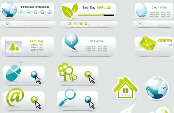 EPS格式,含JPG预览图,关键字:导航,网页设计,按钮,符号,下载,界面,箭头,主页,浏览器,鼠标,矢量图