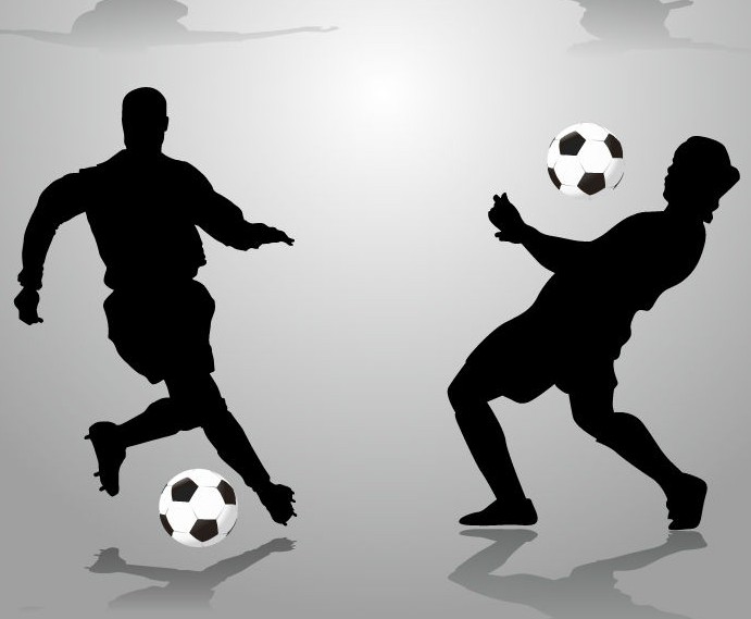 EPS格式,含JPG预览图,关键字:足球,体育,运动,赛事,姿势,运动员,剪影,矢量图