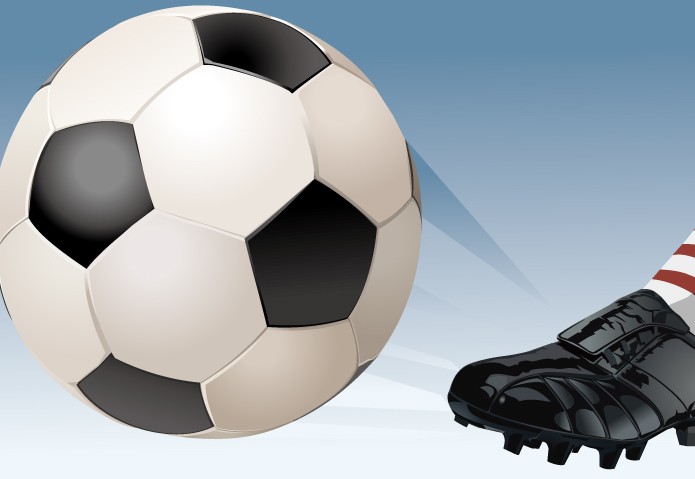 EPS格式,含JPG预览图,关键字:体育,运动,足球,球鞋,射门式踢击图,卡通,Football Kick,矢量图