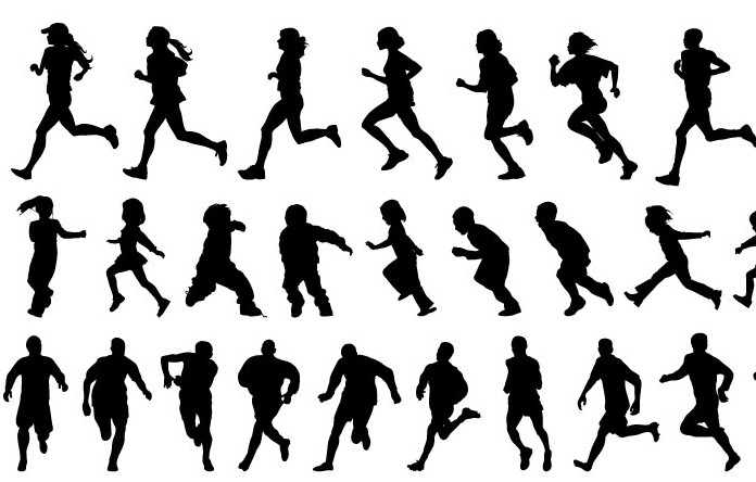 AI格式,含JPG预览图,关键字:跑步,慢跑,孩子,玩耍,运动,男子,女子,运动员,剪影,竞跑,儿童,矢量图