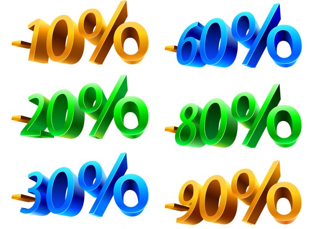 AI格式,含JPG预览图,关键字:促销,折扣,立体文字,百分比,数字,彩色,矢量图