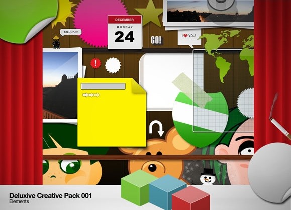 PSD格式,含JPG预览图,关键字:web2.0,元素,便签,卡通,香烟,地图,雪人,日历