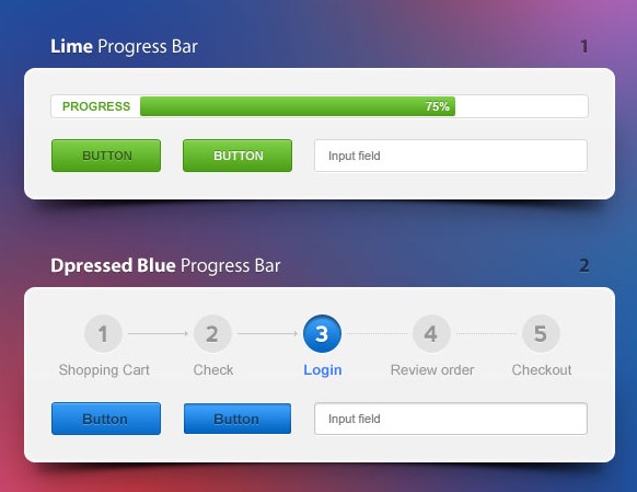 PSD格式,含JPG预览图,关键字:按钮素材,表单,进程面板,注册进阶,注册步骤,购物步骤