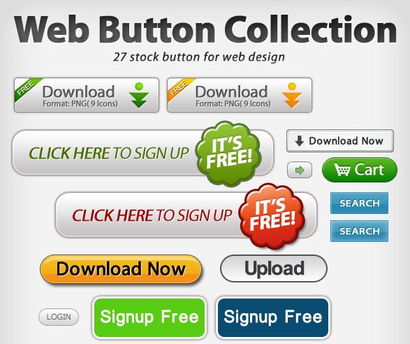 PSD格式,含JPG预览图,关键字:设计常用按钮,下载按钮,播放按钮,RSS订阅按钮,购物车按钮
