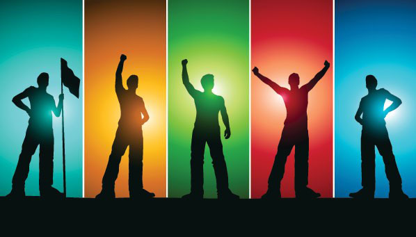 EPS格式,含JPG预览图,关键字:矢量人物,男性,剪影,潮流人物,高大,成功,五色背景,矢量素材。