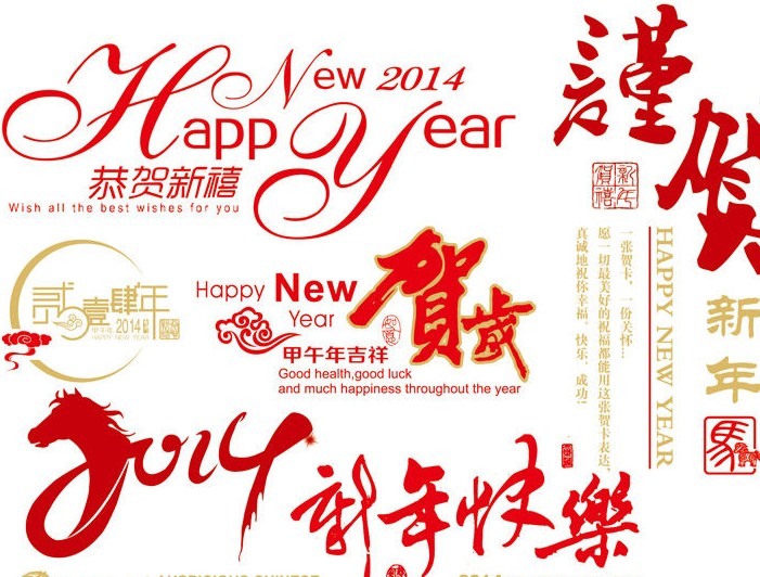 PSD格式,含JPG预览图,关键字:2014,新年快乐,贺岁,马年,恭贺新禧,如意吉祥,万事如意,happy new year,云纹,花纹,马