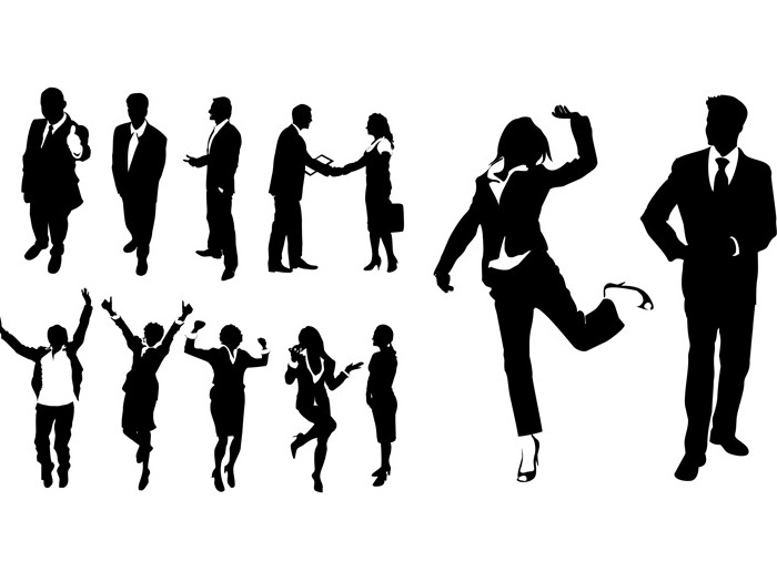 PSD格式,含JPG预览图,关键字:PSD,人物,剪影,商务人士,欢呼,握手,成功,黑白,交谈,雀跃