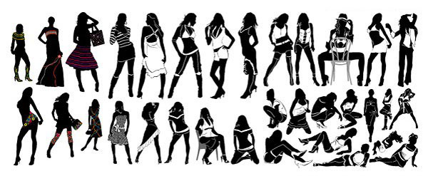 EPS格式,含JPG预览图,关键字:矢量人物,女性,人物剪影,服装,服饰,动作,姿势,时尚,性感,矢量素材。