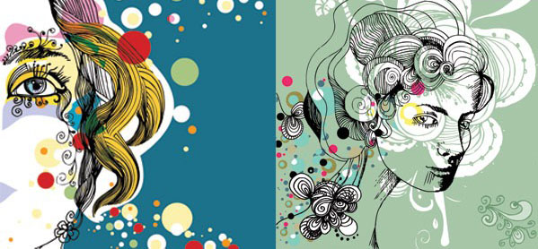 EPS格式,含JPG预览图,关键字:矢量人物,女性,潮流元素,花纹,色彩缤纷,插画,彩色圆点背景素材,矢量素材。