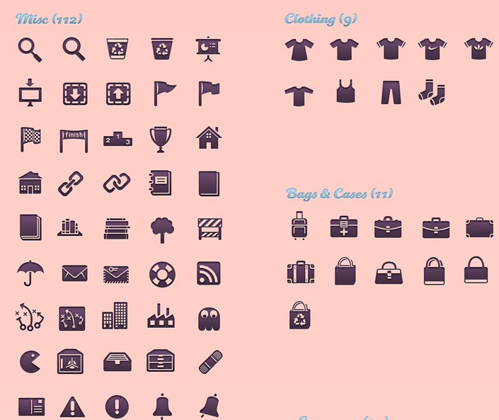 PSD格式,含JPG预览图,关键字:图标,PSD,UI,服饰,办公,购物,天气,社交网站,逃生,wifi,充电