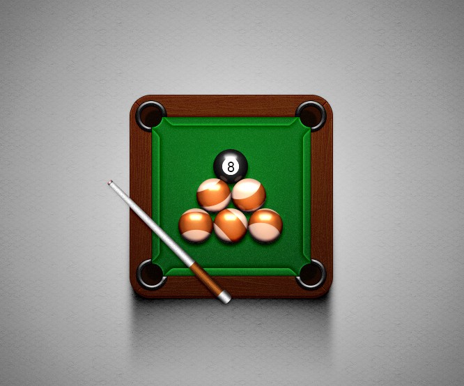 PSD格式,含JPG预览图,关键字:桌球,图标,PSD素材,球杆,黑球,木质,球洞