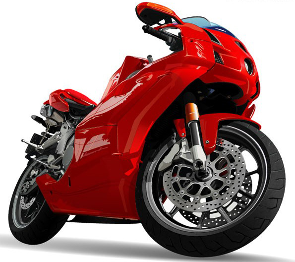 AI格式,含JPG预览图,关键字:矢量交通工具,摩托车,红色,逼真,矢量素材