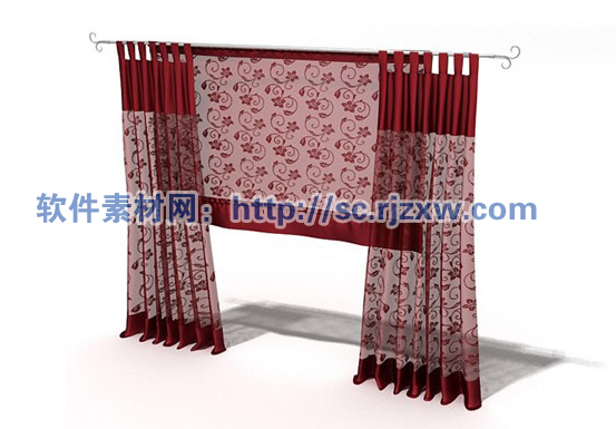 原创红色3D窗帘模型由软件素材网会员免费提供,可以放心使用,格式为MAX格式,请用3Dmax软件打开,感谢大家对软件素材网的支持。