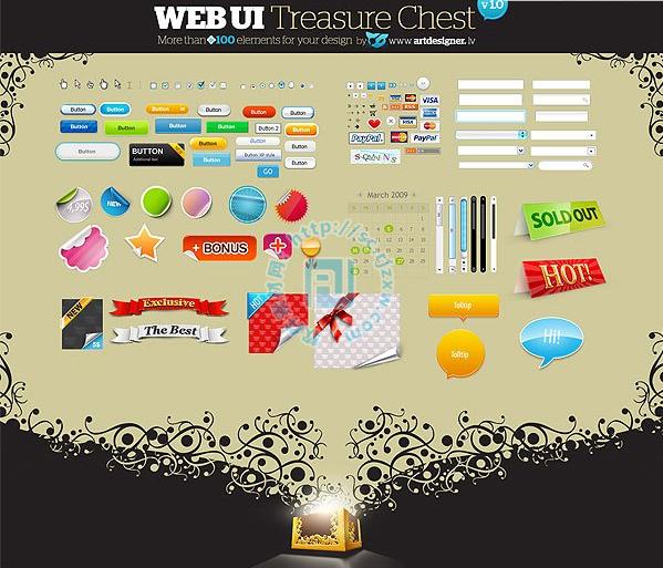 100个实用的网页设计PSD元素