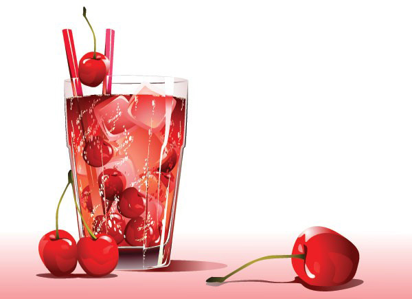 EPS格式,含JPG预览图,关键字:矢量水果,樱桃,冷饮,玻璃杯,冰块,吸管,红色,水果饮品,矢量素材...