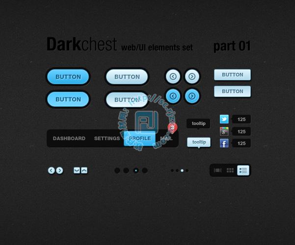 原创蓝灰色按钮一套PSD素材
