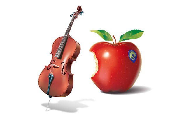 矢量,矢量苹果,矢量小提琴,乐器,水果,红苹果,逼真形象