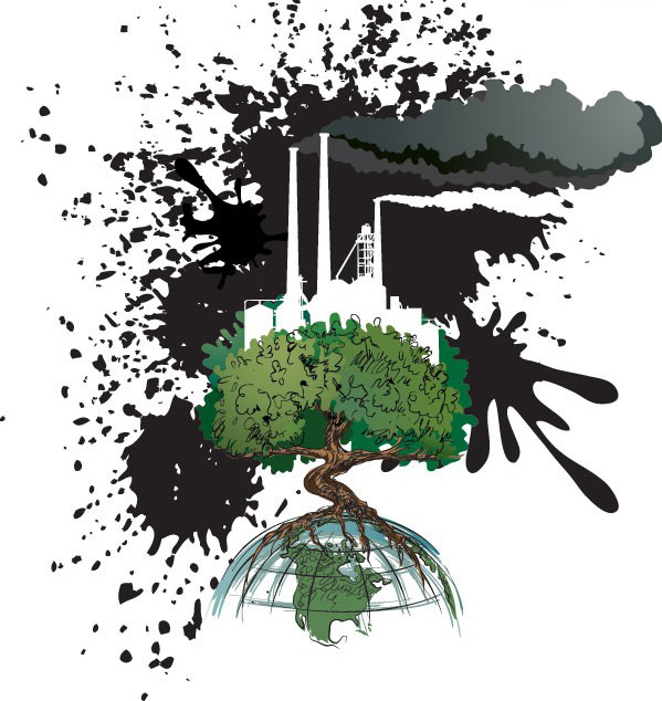 矢量,环境污染,烟雾,烟囱,墨迹,树木,工厂,废气,地球。