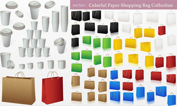 购物袋矢量图与多彩纸杯