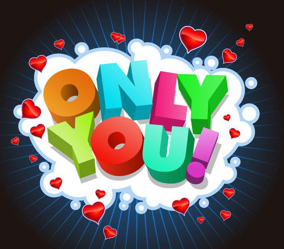 矢量字体,立体,彩色,字母,ONLY YOU,心形,放射线,爱情
