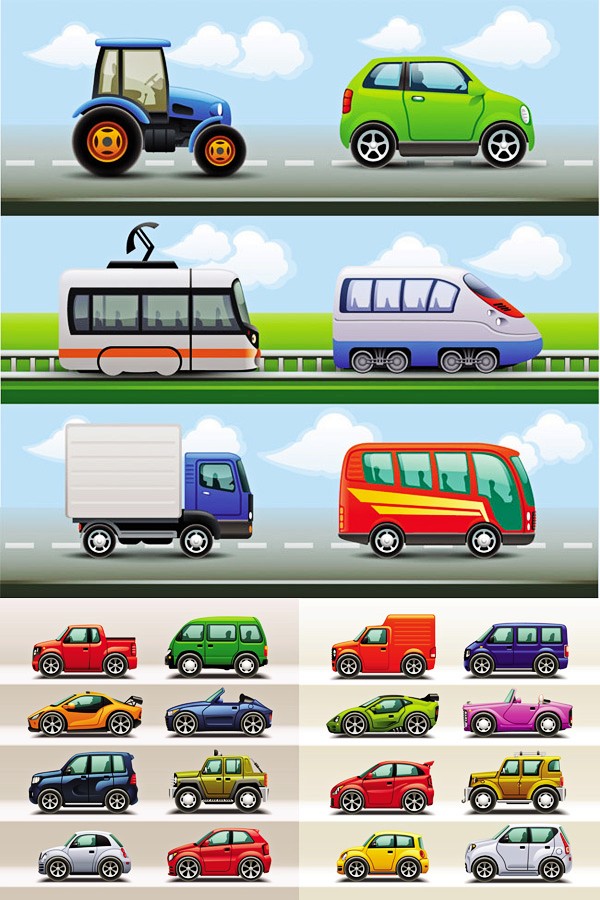 可爱卡通交通工具矢量图由软件自学网会员提供,免费下载,素材为EPS格式,请用illustrator软件打开。