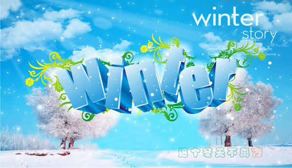 矢量冬天,字体,立体字,艺术字,winter,冬天,背景,雪花,树木,梦幻