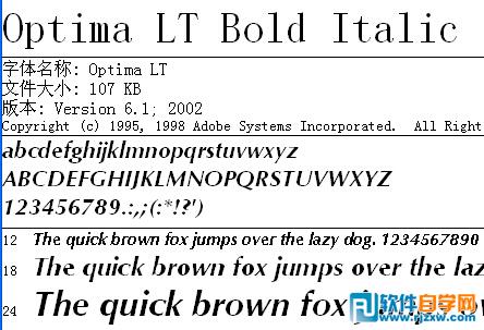 Optima-LT-BlackItalic字体,由软件自学网会员免费提供,XP系统安装方法,下载解压后复制到安装目录里,即可使用。WIN7以上的系统字体安装方法,下载后解压,点字体上的安装就可以了。