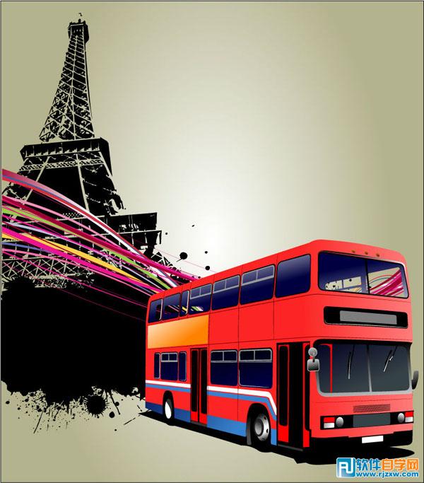 巴士公共汽车和彩虹巴黎铁塔矢量图,由软件自学网会员提供,免费下载,素材为EPS格式,请用illustrator软件打开。