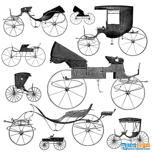 欧式老式马车车辆矢量图,由软件自学网会员提供,免费下载,素材为EPS格式,请用illustrator软件打开。