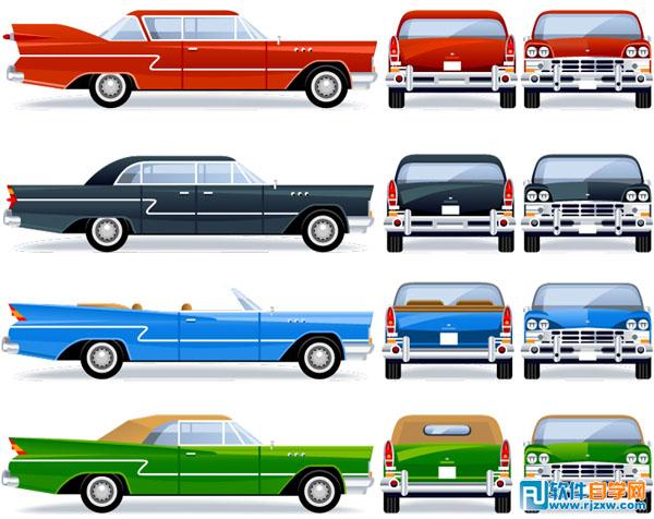 复古车交通工具矢量图,由软件自学网会员提供,免费下载,素材为EPS格式,请用illustrator软件打开。