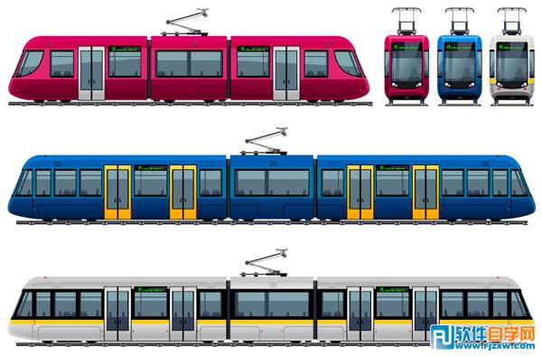 精美电车城铁设计矢量图,由软件自学网会员提供,免费下载,素材为EPS格式,请用illustrator软件打开。