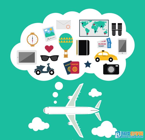 创意飞机旅行背景矢量图,由软件自学网会员提供,免费下载,素材为EPS格式,请用illustrator软件打开。