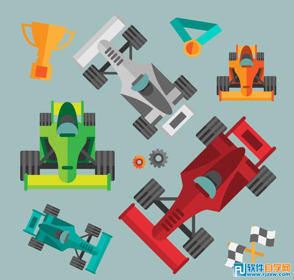 5款彩色F1赛车设计矢量图,由软件自学网会员提供,免费下载,素材为EPS格式,请用illustrator软件打开。