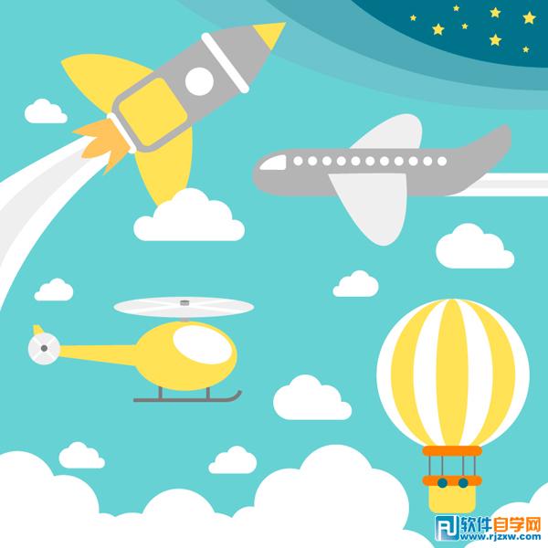 4款卡通飞行设备设计矢量图,由软件自学网会员提供,免费下载,素材为EPS格式,请用illustrator软件打开。